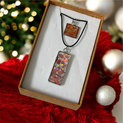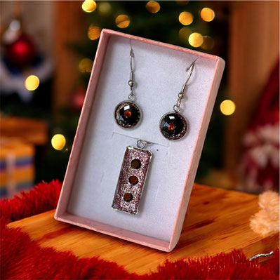 Parure BO+ Pendentif Nébuleuses Mintaka (Noir Rose et Rouge ) acier